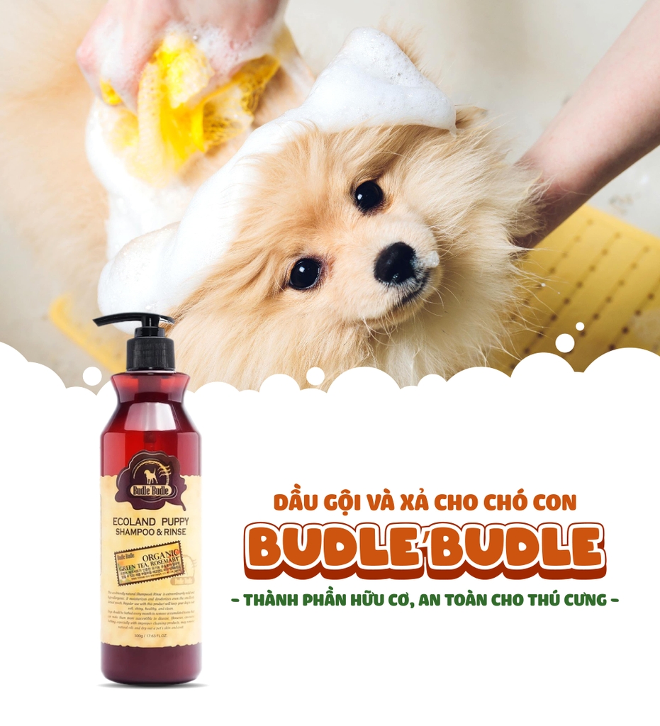 Chứa thảo mộc hữu cơ thiên nhiên, giúp làm sạch và dưỡng ẩm cho bộ lông mềm mại, phù hợp với chó con và làn da nhạy cảm.