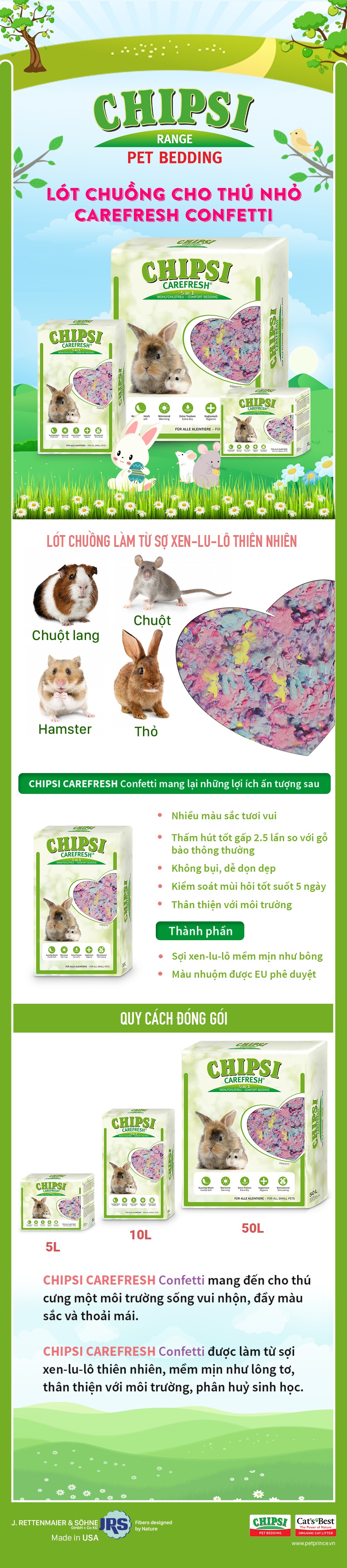 Lót chuồng dành cho thú nhỏ Carefresh Confetti: chuột hamster, chuột lang, thỏ, chuột, sóc, chồn sương. Với các ưu điểm nổi bật sau: