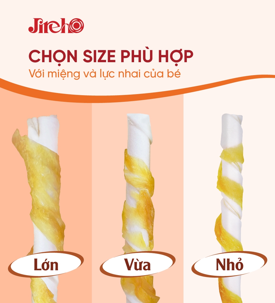 Phù hợp cho mọi giống chó, sử dụng như snack nhai bổ sung hằng ngày hoặc làm món thưởng giữa các bữa ăn.