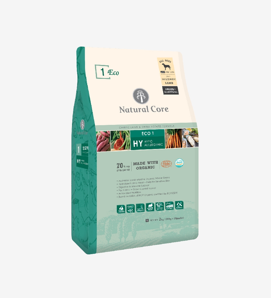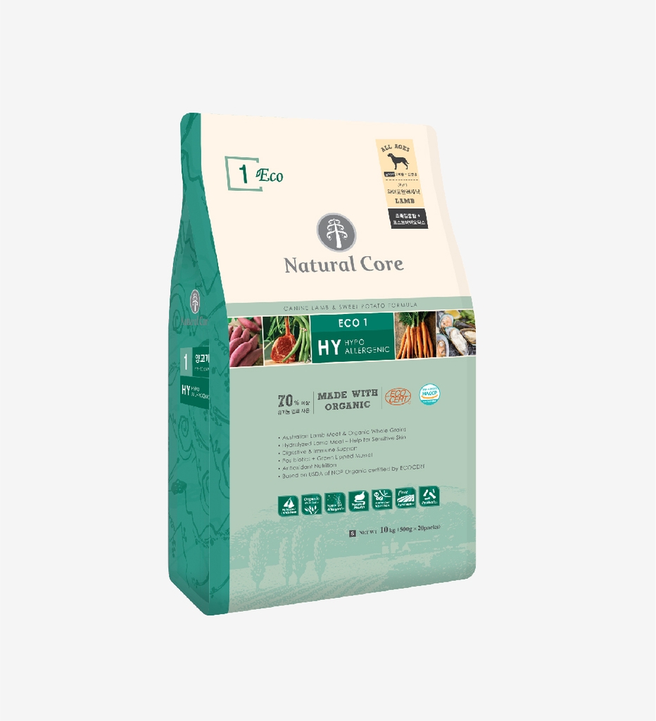 Thịt cừu thủy phân, gạo lứt hữu cơ, lúa mạch nguyên chất hữu cơ, đậu xanh hữu cơ, hạt hướng dương hữu cơ, đậu hữu cơ, mỡ gà, khoai lang hữu cơ, hạt lanh hữu cơ, dầu cá, bột củ cải, EPA-DHA, chiết xuất Yuccacshidigera, Hồng sâm , Muối khô, Methionin, Yến mạch nguyên chất hữu cơ, Fructooligosacarit, Lactobacillus, Trái cây Buckthorn, Hạt anh thảo, Cà rốt, Rau mùi, Rau bina, Canxi Phốtphát, Vitamin C, Vitamin E, Vitamin A, Vitamin D3, Vitamin B1, Vitamin B2, Vitamin B6, Vitamin B12, Biotin, Axit Pantothenic, Axit Folic, Axit Nicotinic, Fe, Cu, Zn, Se, Mn, Co, I