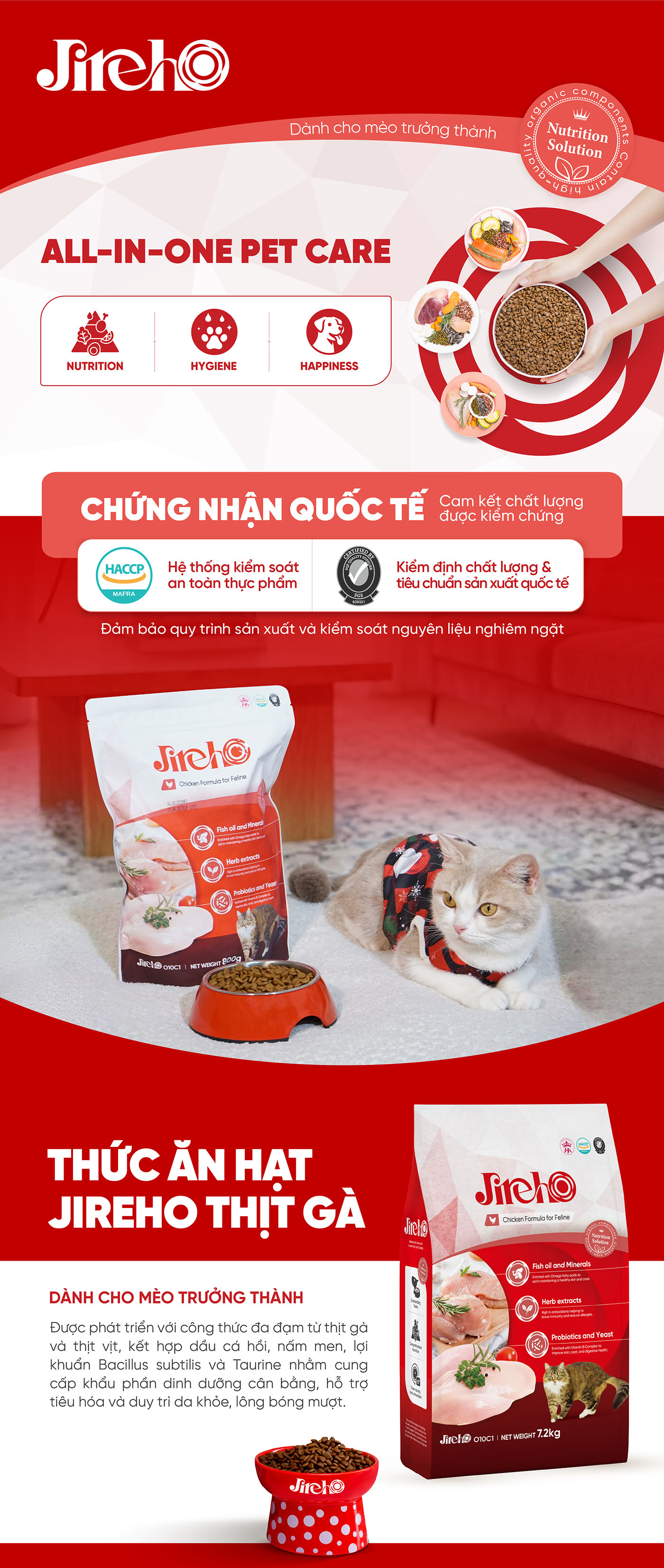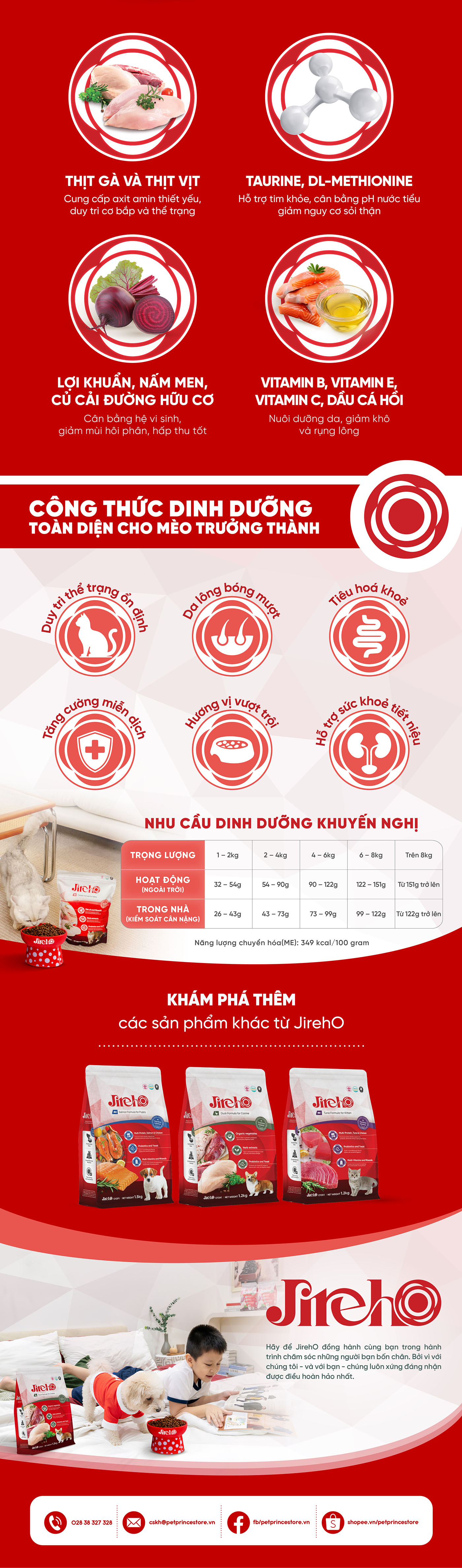 JirehO tin rằng sức khỏe và hạnh phúc của thú cưng bắt đầu từ dinh dưỡng khoa học, an toàn và tinh khiết. Mỗi sản phẩm được phát triển dựa trên tiêu chuẩn dinh dưỡng quốc tế, cân bằng và tối ưu hấp thu để thú cưng khỏe mạnh từ bên trong. Chúng tôi cam kết minh bạch trong nguyên liệu, công thức và quy trình sản xuất, đặt tình yêu, sự thấu hiểu và trách nhiệm làm giá trị cốt lõi. JirehO đồng hành cùng bạn mang đến cuộc sống khỏe mạnh và trọn vẹn hơn cho thú cưng mỗi ngày.