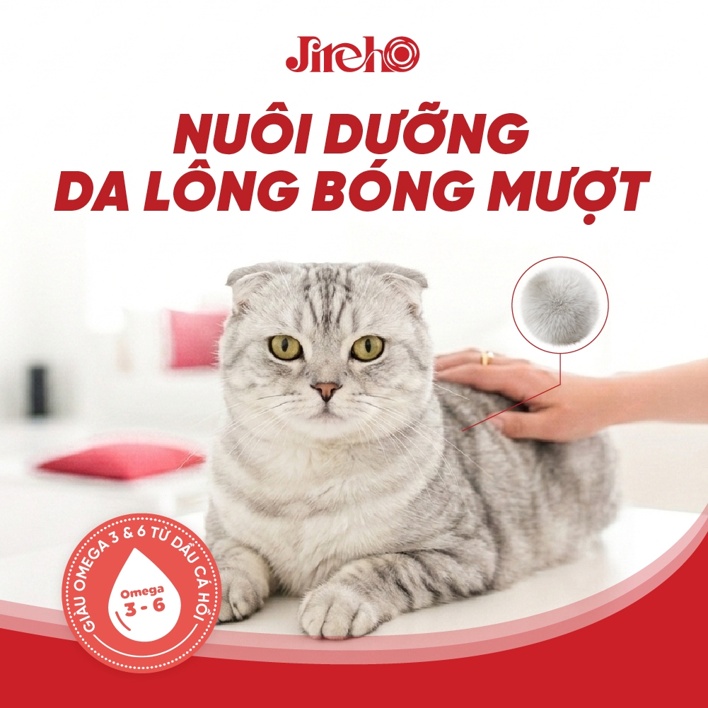 Thành phần dầu cá hồi trong công thức cung cấp EPA và DHA, hai axit béo Omega 3 quan trọng giúp giảm phản ứng viêm, hỗ trợ tim mạch và cải thiện độ bóng mượt của lông. Kết hợp cùng dầu gà giàu Omega 6, sản phẩm giúp cân bằng tỷ lệ axit béo cần thiết để duy trì hàng rào bảo vệ da khỏe mạnh, hạn chế rụng lông và khô da thường gặp ở mèo nuôi trong nhà.