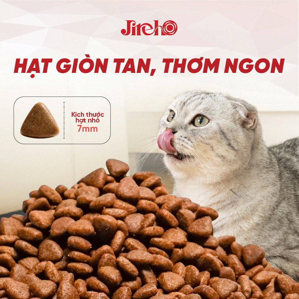 Thức ăn hạt JirehO vị thịt gà cho mèo trưởng thành được phát triển với công thức đa đạm từ thịt gà và thịt vịt, kết hợp dầu cá hồi, nấm men, lợi khuẩn Bacillus subtilis và Taurine nhằm cung cấp khẩu phần dinh dưỡng cân bằng, hỗ trợ tiêu hóa và duy trì da khỏe, lông bóng mượt.