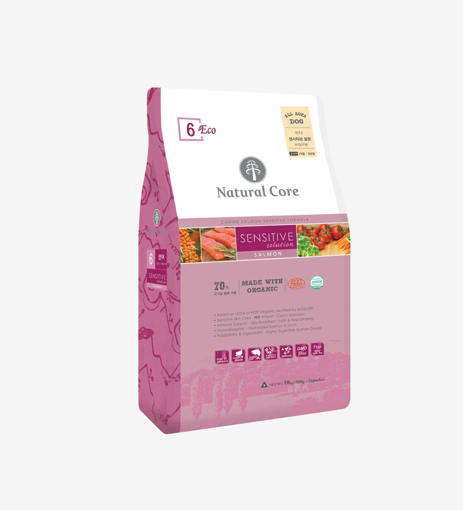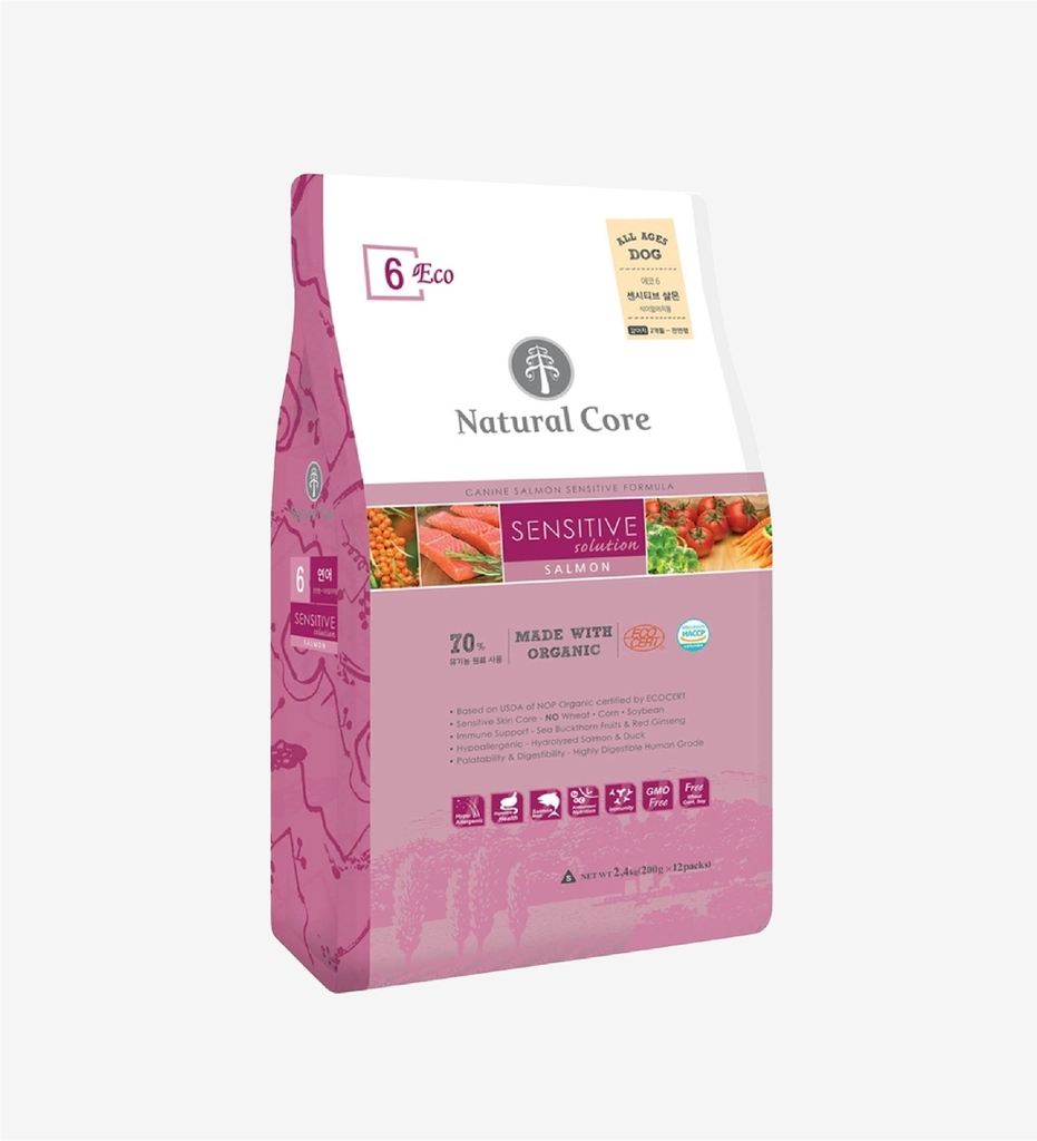 Thịt cá hồi thủy phân, Gạo lứt hữu cơ, Hạt kê hữu cơ, đậu xanh hữu cơ, hạt hướng dương hữu cơ, lúa mạch hữu cơ, đậu hữu cơ, khoai lang hữu cơ, hạt lanh hữu cơ, mỡ gà, phô mai, dầu cá, nhuyễn thể khô, bột củ cải, thịt vịt, Yến mạch nguyên chất hữu cơ, chiết xuất Yuccacshidigera, Methionin, Muối khô, Fructooligosacarit, Inulin, Hồng sâm, Canxi Phốtphát, Hắc mai biển, Hạt anh thảo, Cà rốt, Rau mùi, Rau bina, Lactobacillus, Vitamin C, Vitamin E, Vitamin A, Vitamin D3, Vitamin B1, Vitamin B2, Vitamin B6, Vitamin B12, Biotin, Axit Pantothenic, Axit Folic, Axit Nicotinic, Fe, Cu, Zn, Se, Mn, Co, I.
